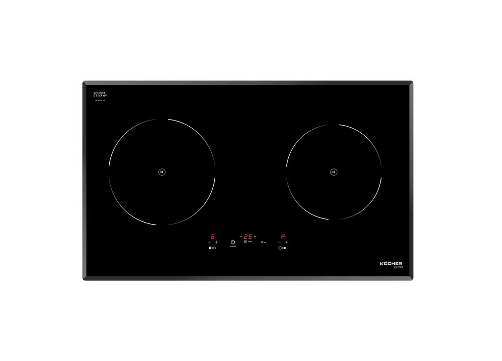 + Mặt kính nguyên khối màu đen, vát cạnh Eurokera chính hãng