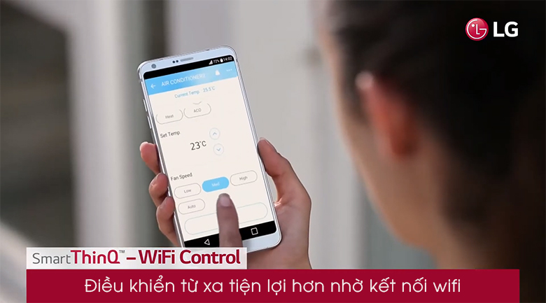 Người dùng hoàn toàn có thể theo dõi thông tin các hoạt động của máy lạnh LG Inverter đồng thời điều khiển từ xa tiện lợi ngay trên điện thoại được kết nối đồng bộ.