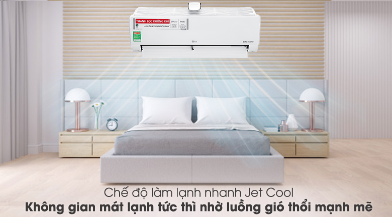 Chế độ làm lạnh nhanh Jet Cool cho phép máy nén và quạt hoạt động với mức công suất tối đa để làm lạnh không gian phòng nhanh chóng trong thời gian ngắn nhờ những luồng gió thổi mạnh mẽ.