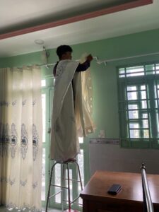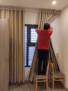 – Bàn giao rèm đã giặt sạch sẽ và lắp đặt lại đúng vị trí ban đầu giúp khách hàng