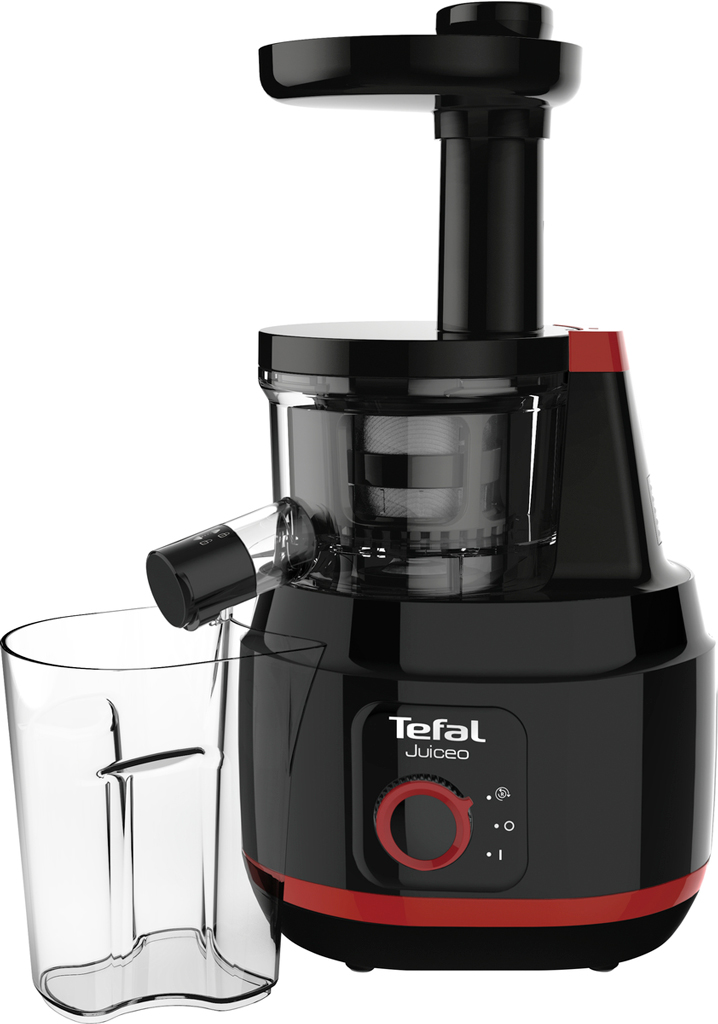Máy ép trái cây Tefal ZC150838 có thiết kế gọn đẹp, tông màu đen chủ đạo sang trọng. Với công suất 150W và công nghệ ép chậm giúp trái cây được ép kiệt hơn, nước ép hầu như không bị tách nước và không tạo bọt khi ép.