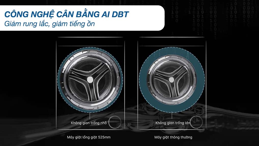 – Công nghệ cân bằng AI DBT đảm bảo vận hành máy giặt êm ái và mạnh mẽ dưới khối lượng lớn và thiết kế máy giặt nhỏ gọn.