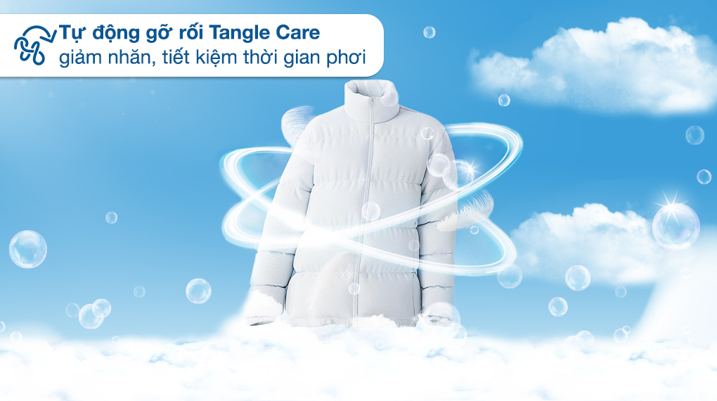 Chế độ Tangle Care được trang bị trên máy giặt cửa trên Panasonic này giúp tự động gỡ rối quần áo sau mỗi mẻ giặt vô cùng tiện lợi
