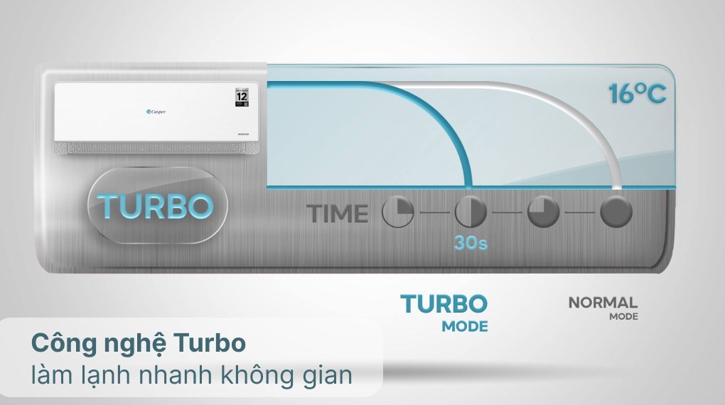 – Máy lạnh còn được trang bị chế độ Turbo, khi kích hoạt máy sẽ hoạt động với công suất lớn nhằm nhanh chóng làm lạnh nhanh không gian. Nhờ đó mang đến làn gió mát lành dễ chịu, thoải mái trong thời gian ngắn cho người sử dụng.