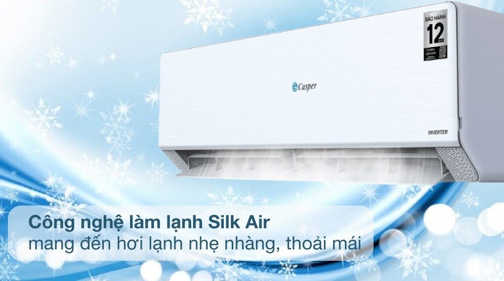– Máy lạnh Casper 1.5 HP trang bị công nghệ Silk Air có khả năng đánh tơi khí mềm nhờ có phần cánh vẫy với thiết kế 1789 lỗ khí nhỏ li ti, nhờ đó khí lạnh được tỏa ra một cách nhẹ nhàng, mang đến không gian dễ chịu.