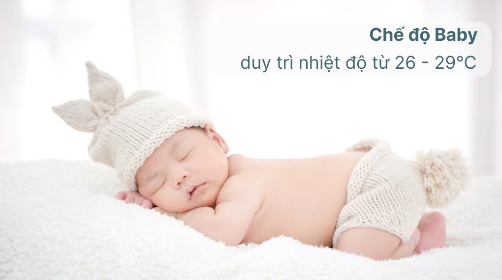 – Chế độ Baby khi sử dụng sẽ duy trì nhiệt độ dao động trong mức từ 26 – 29℃, tạo luồng khí mát êm dịu đưa trẻ em vào giấc ngủ ngon và thức dậy sảng khoái.