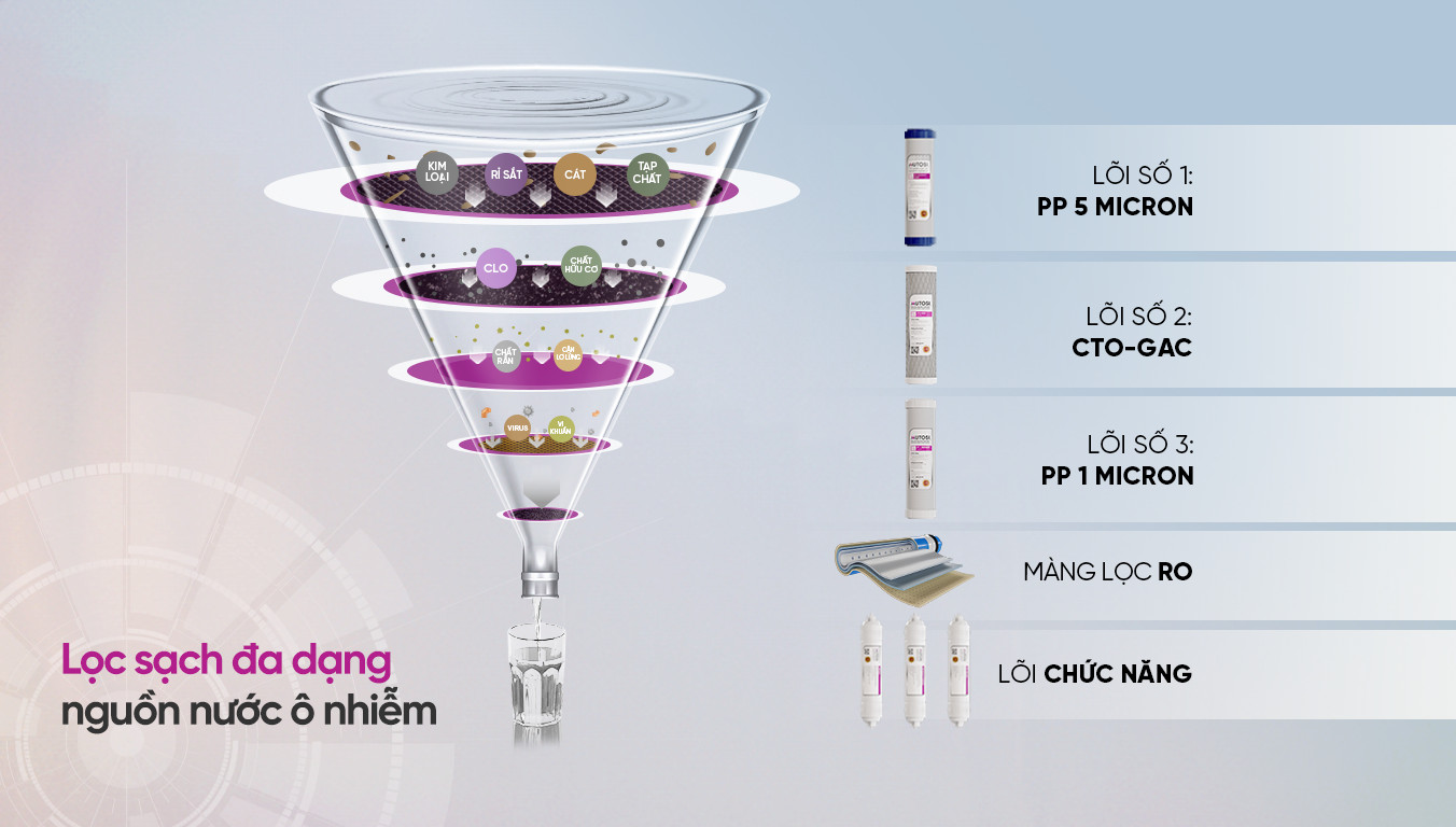 10 cấp lọc ưu việt – Lọc sạch 99,99% tạp chất trong nước