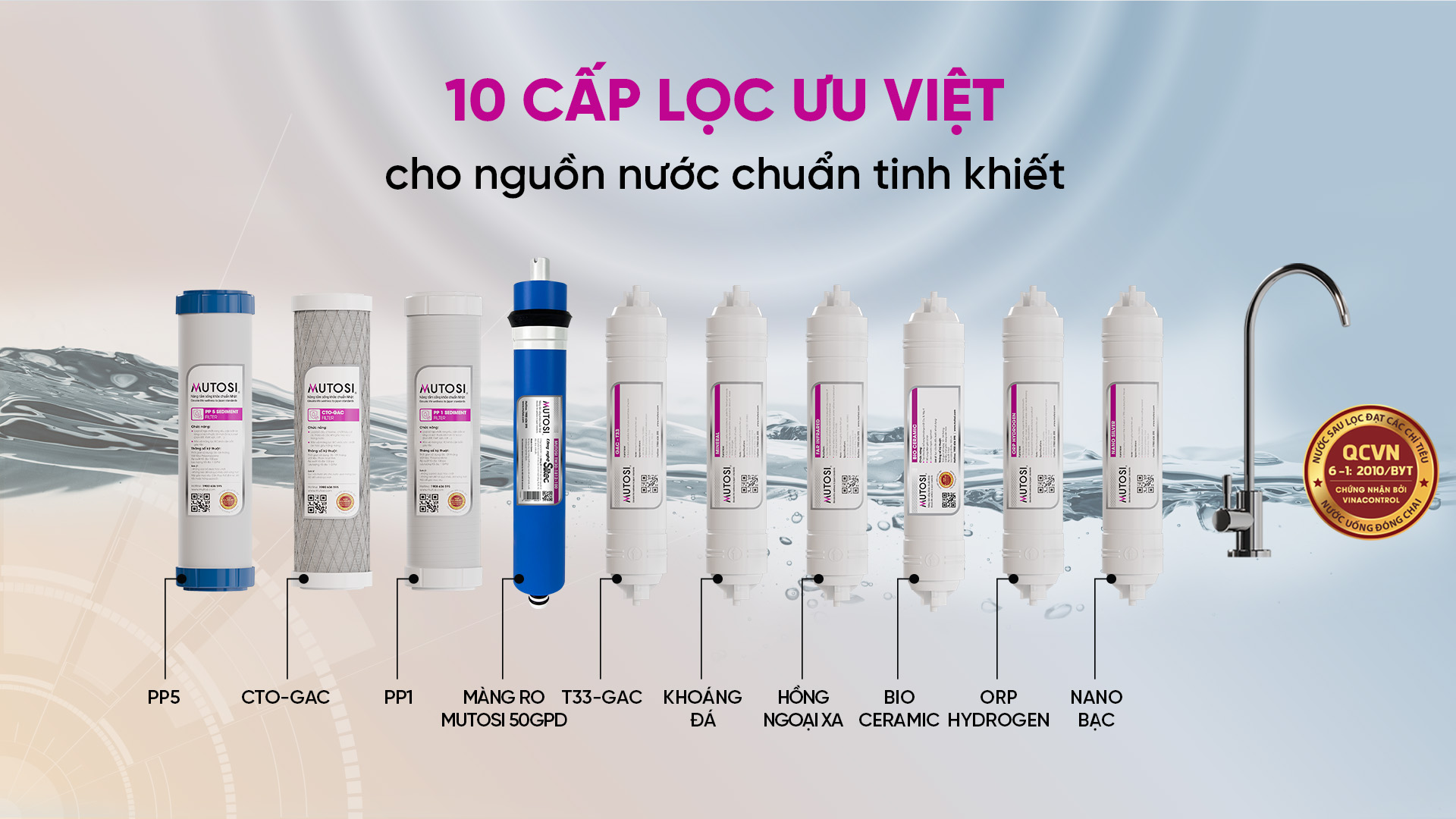 NƯỚC SẠCH CHUẨN TINH KHIẾT VỚI 10 CẤP LỌC MẠNH MẼ, LỌC SẠCH 99,99% TẠP CHẤT