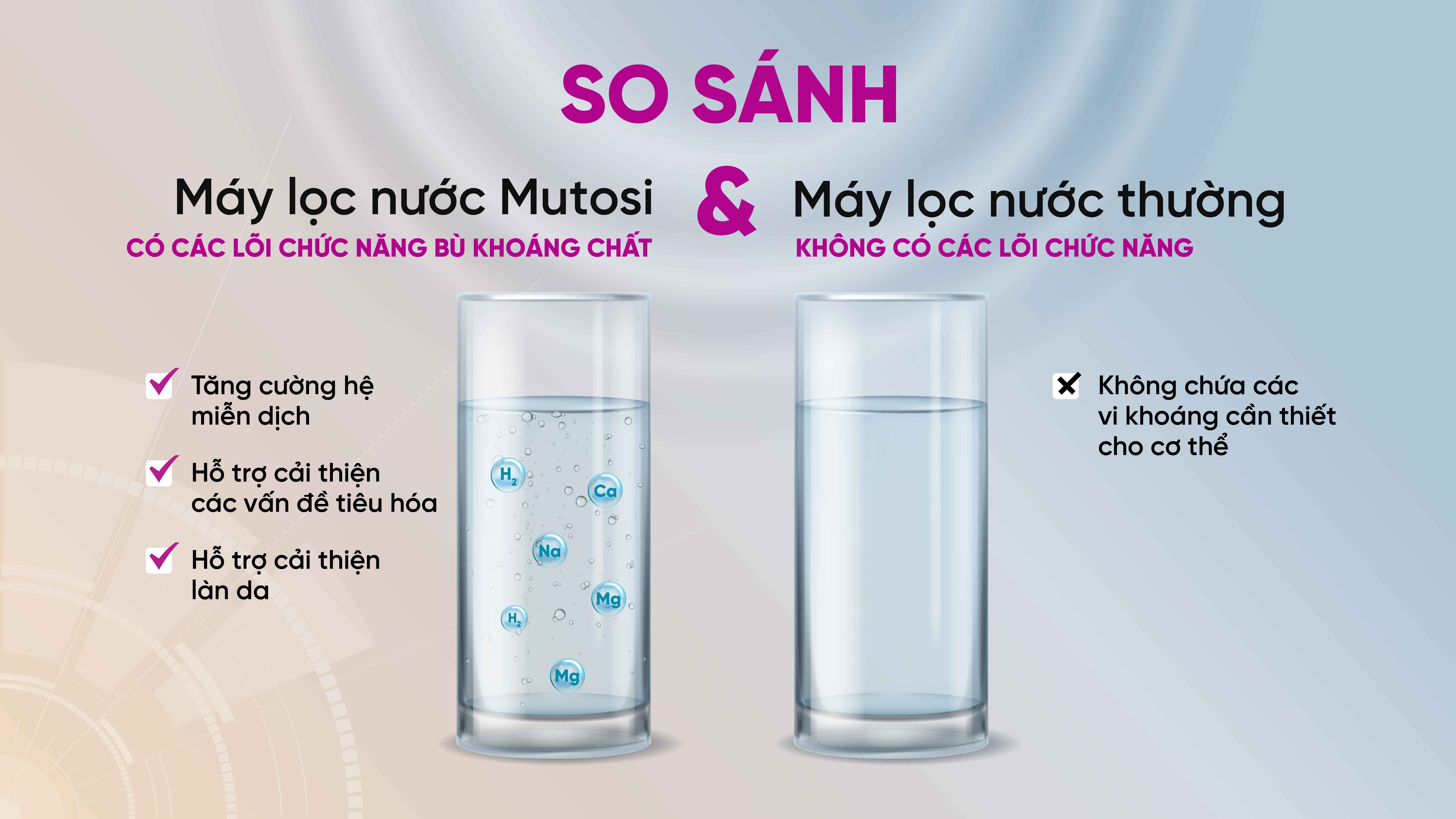 SO SÁNH CHỨC NĂNG BÙ KHOÁNG CỦA MÁY LỌC NƯỚC MUTOSI