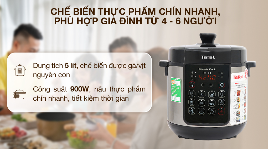 Nồi áp suất điện Tefal Speedy Cook CY222D68 5 lít là giải pháp cho những bữa ăn đa dạng và giàu dinh dưỡng, bạn có thể tha hồ trổ tài nấu nhiều món ngon chỉ với 1 nồi. Thiết bị với nhiều chương trình tích hợp, tiện ích hữu dụng và tính năng an toàn, đảm bảo cho khách hàng sử dụng thuận tiện và dễ dàng, hứa hẹn là sản phẩm đa năng trong căn bếp gia đình.