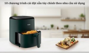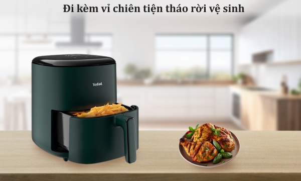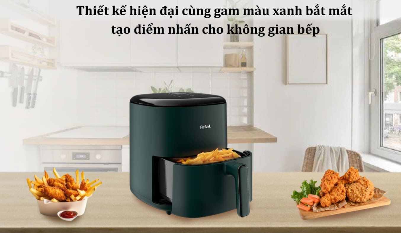 Nồi chiên không dầu Tefal 5 lít EY245310 thiết kế hiện đại, nhỏ gọn cùng gam màu xanh bắt mắt tô điểm cho không gian bếp thêm phần nổi bật. Lòng nồi phủ chống dính dễ dàng vệ sinh, vỏ ngoài bằng nhựa cách nhiệt để bạn an tâm sử dụng. Dung tích tổng 5 lít chế biến được khoảng 6 cánh gà, 1 kg khoai tây chiên,…