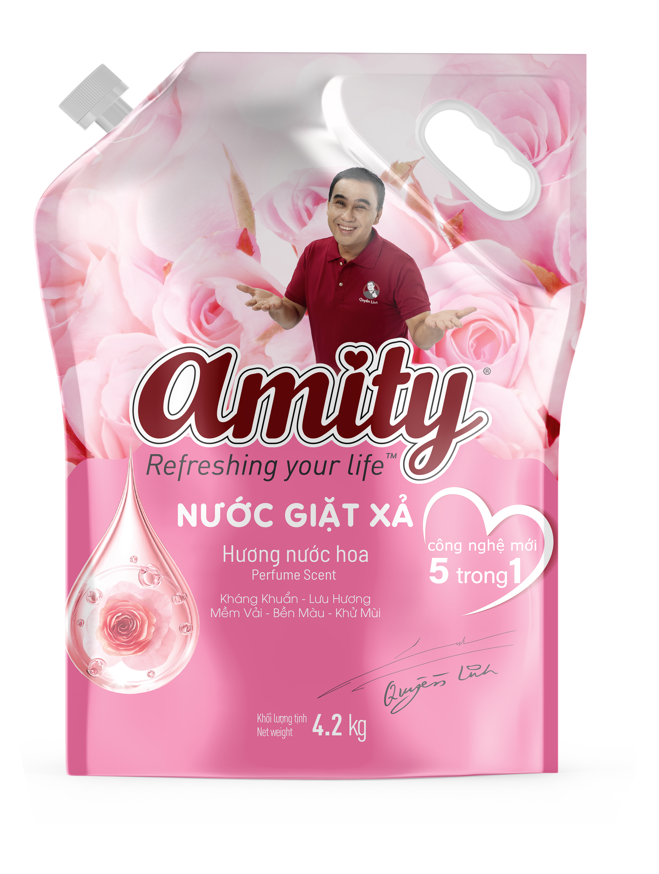 Sản phẩm nước giặt, xả Amity được tích hợp hai chức năng quan trọng là giặt và xả (2 trong 1), mang đến sự tiện dụng cho người sử dụng, có chức năng diệt khuẩn, khử mùi, tập trung vào khả năng giặt tẩy, diệt khuẩn mạnh cùng hương thơm đậm.Sản phẩm có thể sử dụng cho cả máy giặt cửa trên và giặt tay, đáp ứng đa dạng nhu cầu sử dụng của khách hàng.