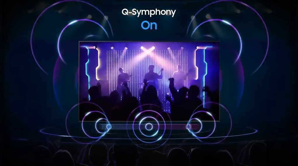– Công nghệ Q-Symphony Next kết hợp cả tivi Samsung và loa thanh Samsung để tạo ra những thanh âm tuyệt vời được đồng bộ liền mạch, mang đến cảm giác chìm đắm bao trùm mọi giác quan.