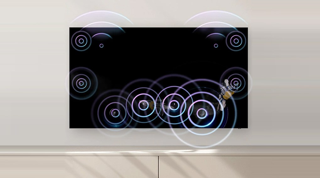 – Hệ thống loa với tổng công suất 90W 6.2.4 kênh cùng công nghệ OTS Pro sử dụng công nghệ AI đưa âm thanh theo dấu chuyển động đến mọi vị trí kể cả phần trung tâm của màn hình cho trải nghiệm nghe mạnh mẽ, trung thực đáng ngạc nhiên.