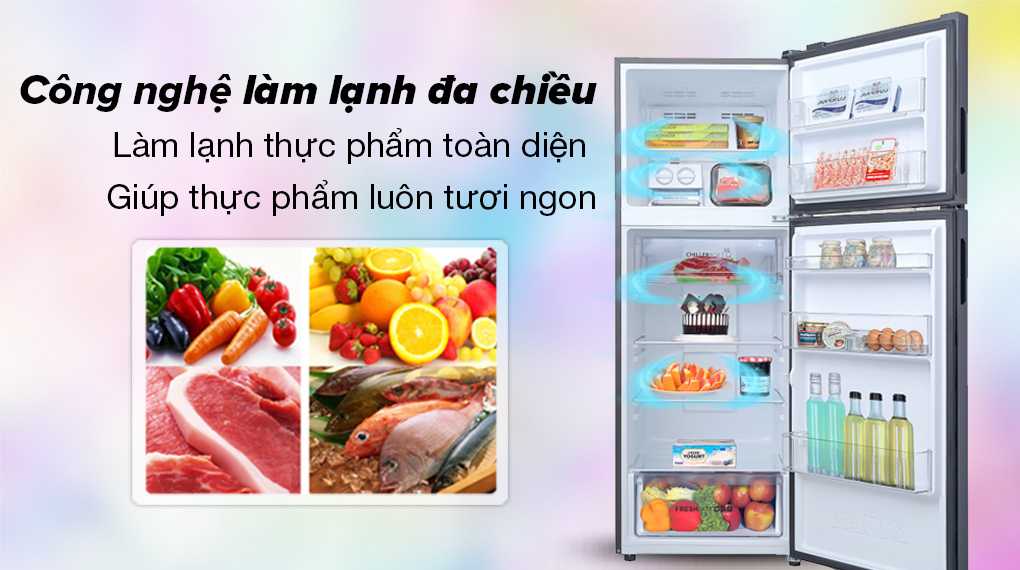 – Công nghệ làm lạnh đa chiều: lan tỏa khí lạnh đều khắp khoang tủ cho thực phẩm bên trong được làm lạnh toàn diện, tránh tối đa tình trạng hư hỏng, ôi thiu.