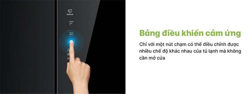 – Bảng điều khiển cảm ứng bên ngoài thiết kế dạng cảm ứng, nằm ở phía ngoài cửa tủ giúp người dùng dễ dàng quan sát nhiệt độ và điều khiển chức năng nhanh chóng khi cần thiết. Bạn chỉ cần chạm nhẹ vào bảng điều khiển để điều chỉnh nhiều chế độ khác nhau của tủ lạnh. Tính năng này không chỉ tiết kiệm thời gian mà còn tối ưu hóa trải nghiệm người dùng, làm cho việc quản lý tủ lạnh trở nên thuận tiện và linh hoạt hơn.