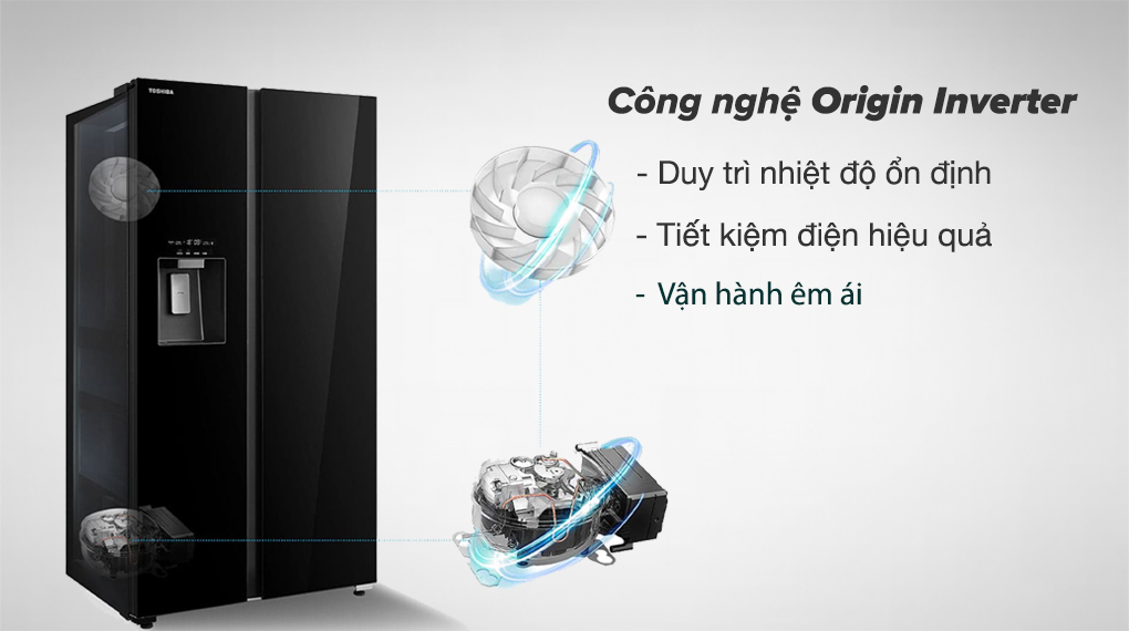 Công nghệ Origin Inverter: Sử dụng đồng thời máy nén và quạt giúp cho nhiệt độ bên trong tủ lạnh Toshiba 568 lít luôn được ổn định mà vẫn mang lại hiệu quả tiết kiệm điện năng. Ngoài ra, công nghệ này còn hỗ trợ tủ lạnh có khả năng hoạt động êm ái và bền bỉ theo thời gian sử dụng.